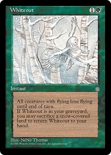 氷雪土地を1つ生け贄に捧げる:あなたの墓地にある《Whiteout》をあなたの手札に戻す。