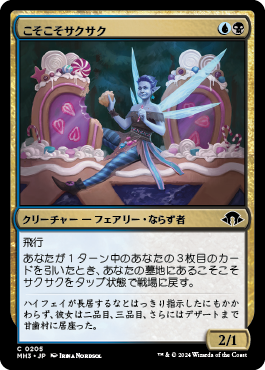 スペルを唱えると火力を飛ばすクリーチャーと相性の良い《目標の強奪/Grab the Prize》や《街道筋の強奪/Highway Robbery》といった《苦しめる声》の上位互換を使い、手札を回しつつ、墓地に落とした《こそこそサクサク/Sneaky Snacker》を釣り上げて打点を作ります。