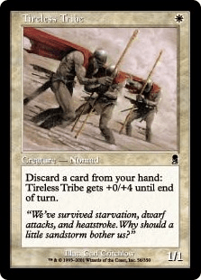 このギミックは、パウパーを嗜んでいる方ならご存知かと思います。【不屈の部族シュート(Inside Out)】で使われているものですね。手札を捨ててパンプアップするので、氷雪土地が戦場にある分、何度でも手札に帰ってくる《Whiteout》と《不屈の部族》は相性抜群です。