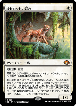《オセロットの群れ》により3ターン目には昇殿達成(パーマネント10個以上のコントロール)も容易です。