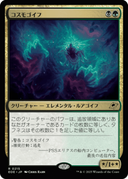 《血清の粉末》によりマリガンという0ターン目に動くことで《コスモゴイフ》を強化できるのがポイント。