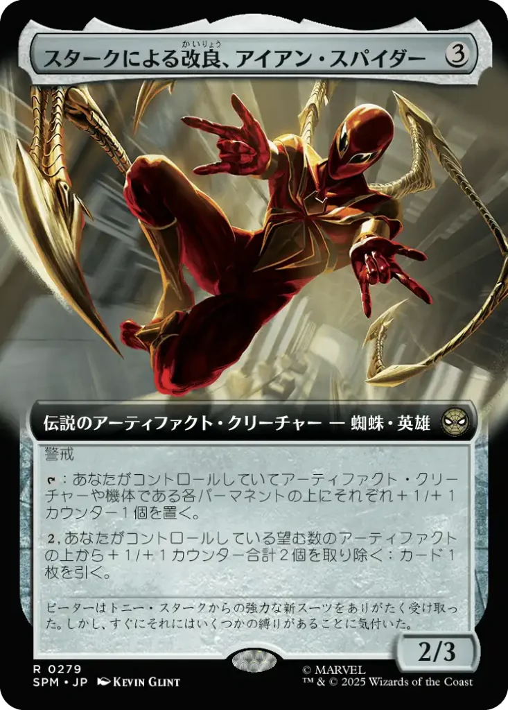 そういうわけで無色の統率者デッキつくった。 今回は《スタークによる改良、アイアン・スパイダー/Iron Spider, Stark Upgrade》を統率者にした、アーティファクト++1/+1カウンター構成です。