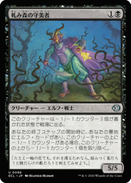 1/7/7威迫と優秀なスタッツだが、出た時に-1/-1が6個乗って出るので実質1/1です。-1/-1カウンターはパーマネントが自分の墓地に落ちればいいのでかなりぬるいです。枯朽で落としやすいので能動的に強化可能。