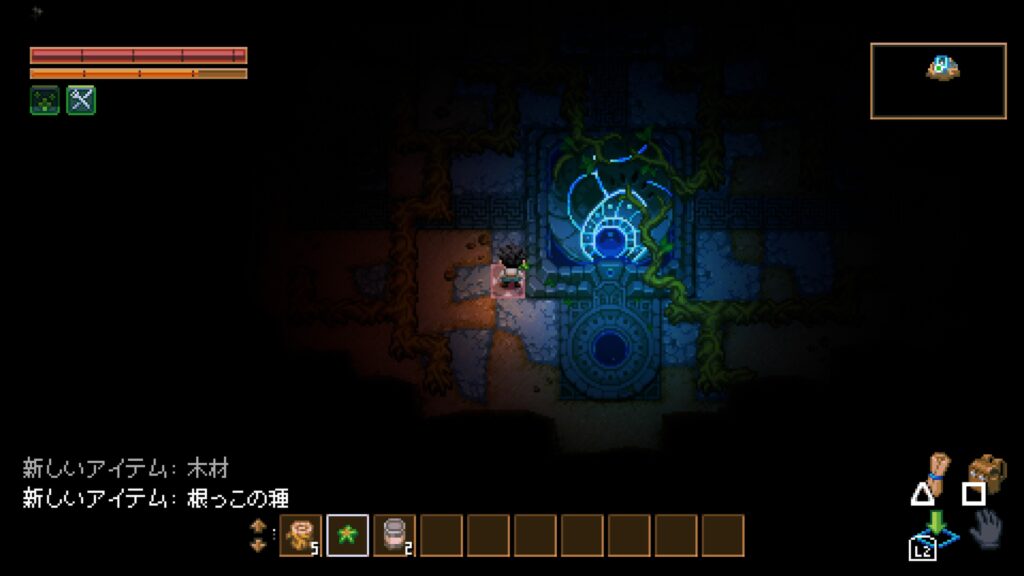 とりあえずマイクラ系らしいので、マイクラと同じように作業台がいるはず、ということで木の根を殴ります。
