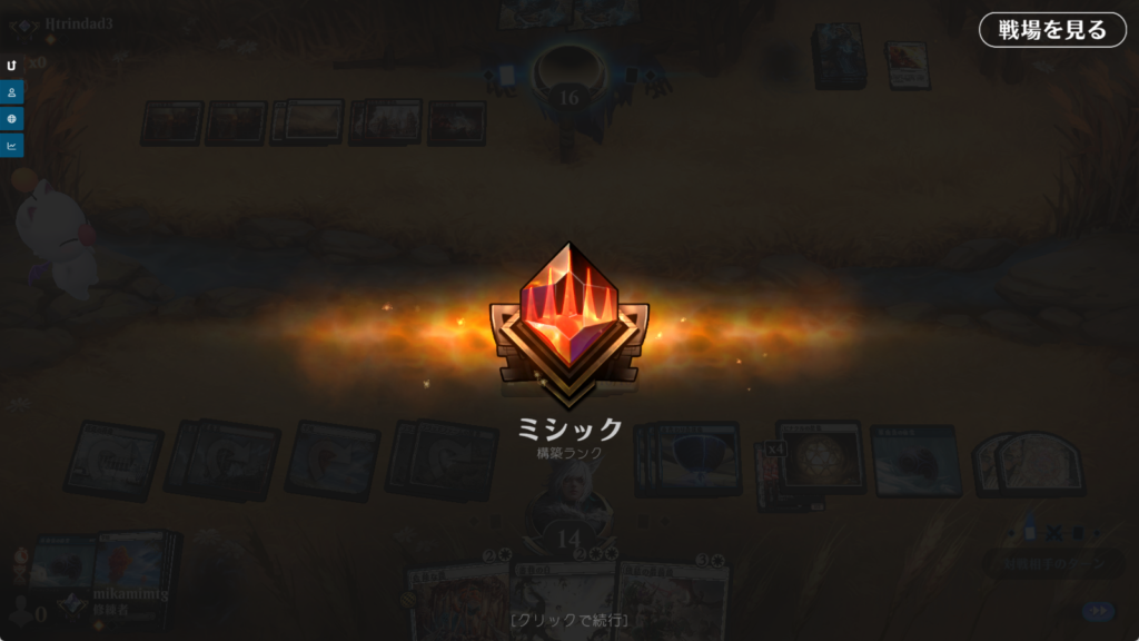 序盤耐えて盤面固める構成が完全に刺さっている。特に《ピナクルの星檻》が刺さる小型クリーチャーを多用するタイプには有利でした。