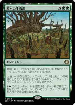 似たようなタイプのデッキ。《若木の生育場》と《身代わり合成機》のトークンどちらかが先に多く並べられるかの勝負。