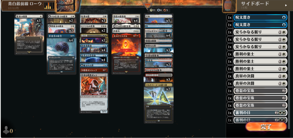 《素早き救済者、アン》やサイドからの《エイヴンの阻む者》が苦手なこのデッキでは《倦怠の宝珠》が定着するかどうかが鍵。
