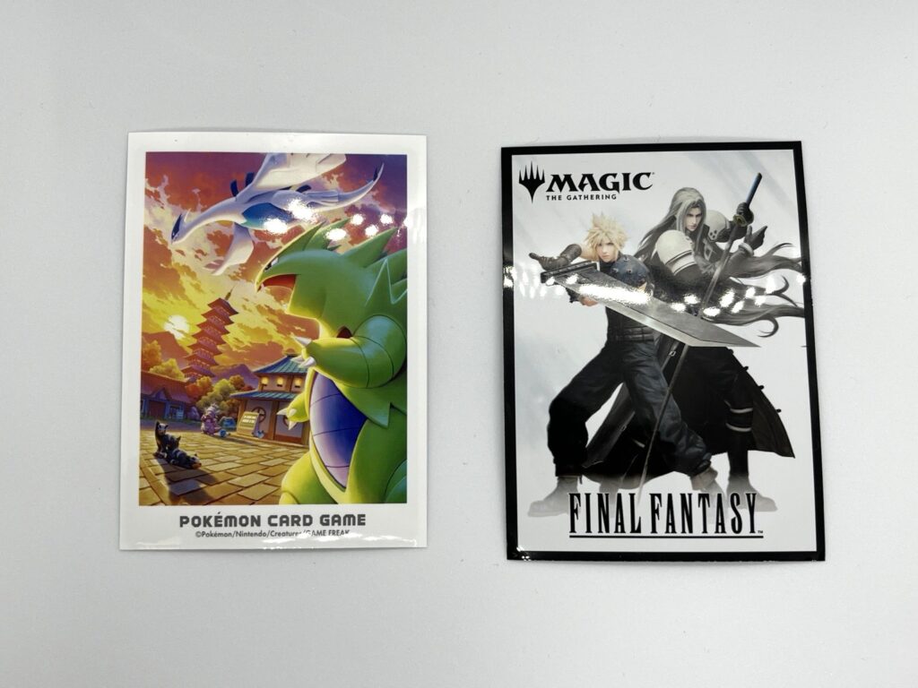 実際に私が配信卓に呼ばれた際もキャラクタースリーブは使用不可と判断され、その場で大会側から公式スリーブが提供されました。その時は提供されたスリーブは3種類の中から選択でき、そのまま持ち帰り可能でした。ちなみにMTG×FFの大会だったのでFFスリーブが提供されたのかなと思います。