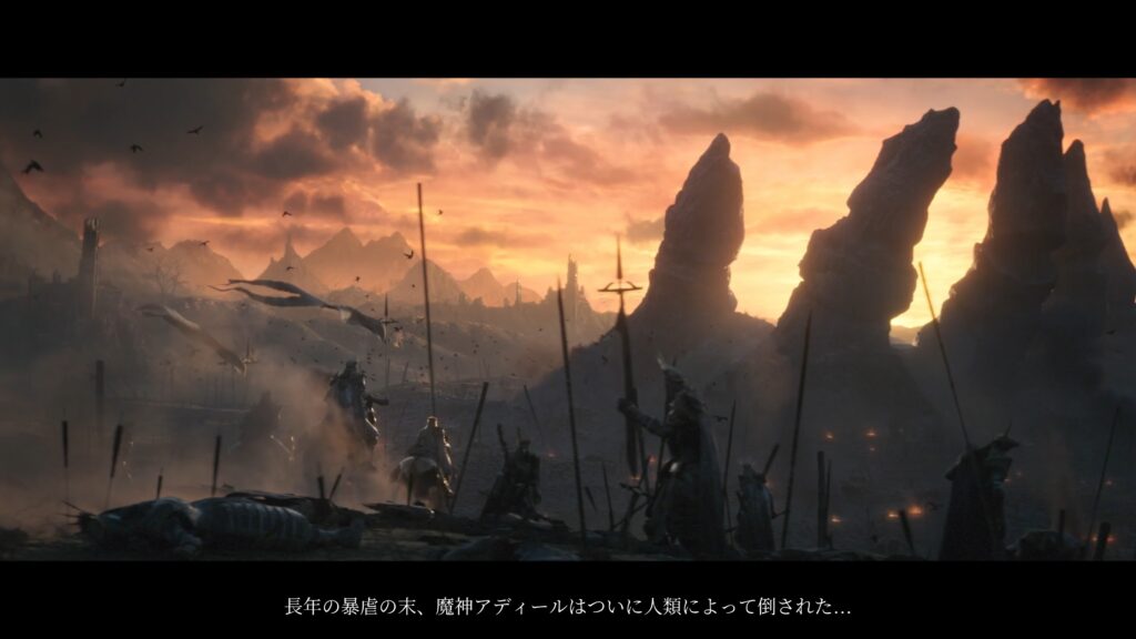 ストーリーが流れていますが……ダクソ系らしく18禁な映像ですね。グロ的な意味で。