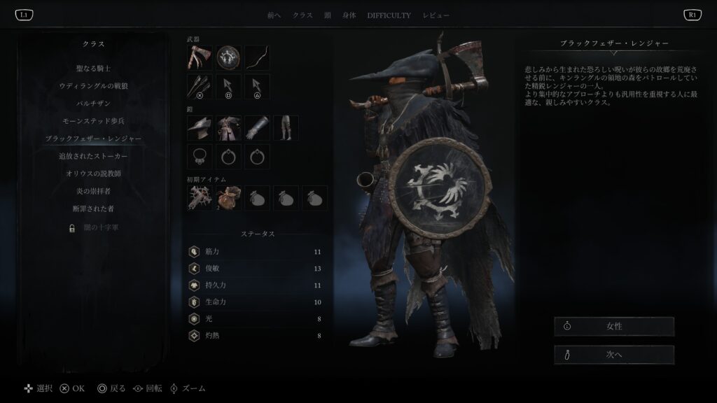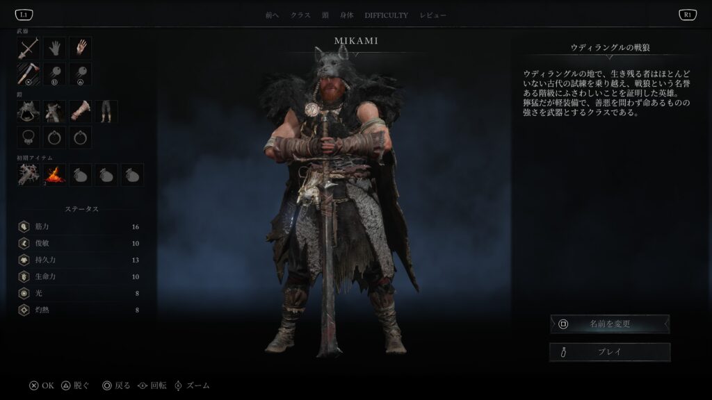 大剣好きなのでこの狼のおっさんにしましょう。キャラメイクはテキトー派なのでさっくり作って。