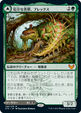 フレイバーテキストから、《ぶらつく害獣、ブレック》は《厄介な害獣、ブレックス》の息子であることが示唆されています。