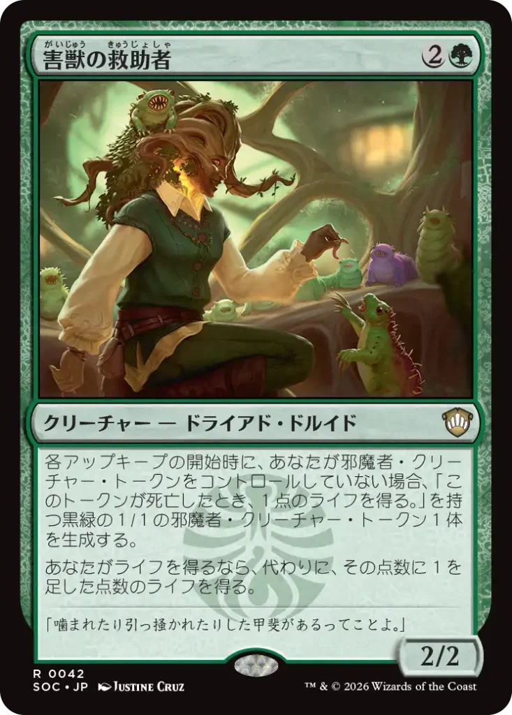 相手プレイヤーのクリーチャーが出ても反応するライフゲインエルフ。他の類似カードは自分のクリーチャーしか参照しないものが多いため、このカードの採用優先度は特に高そうです。