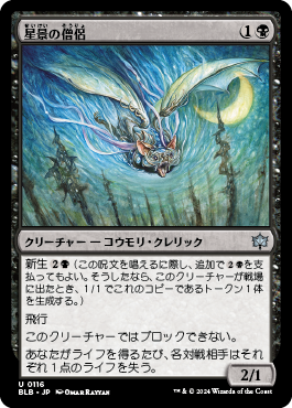 ストリクスヘイヴンの秘密に収録されている、他のクリーチャーのETBでライフを得る。コモン収録なのでプレリリースに参加すればまず手に入るでしょう。