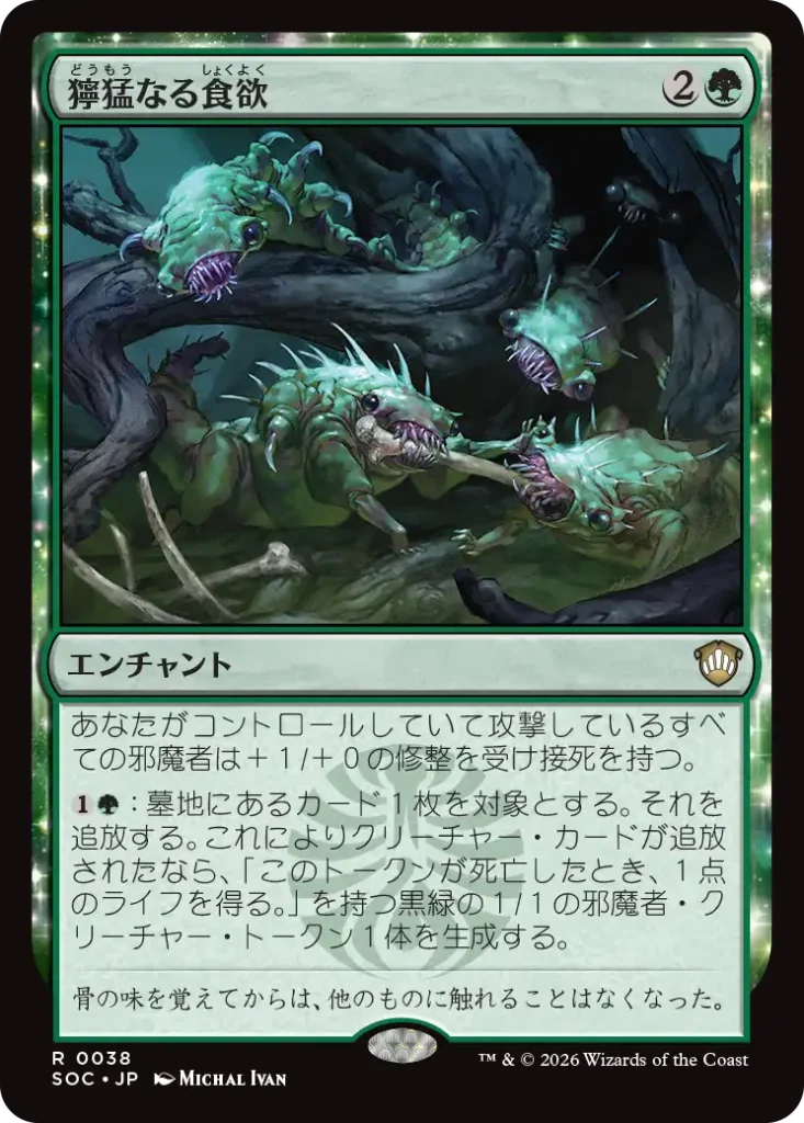 貴重な邪魔者クリーチャー。あなたがコントロールするトークンを含むクリーチャーが死亡する度強化され、死亡した分だけの強化が乗って他のクリーチャーがでる。
